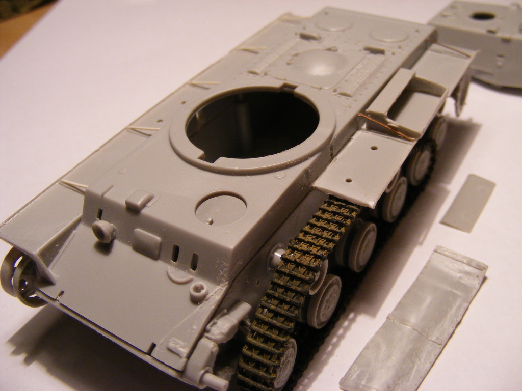 - Affixed spare panzer tracks liberated from a Trumpeter Stug III kit. The rubber tracks are better suited than link and