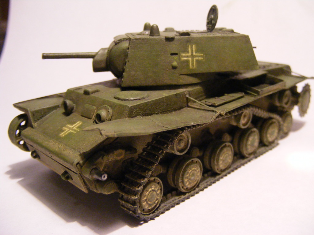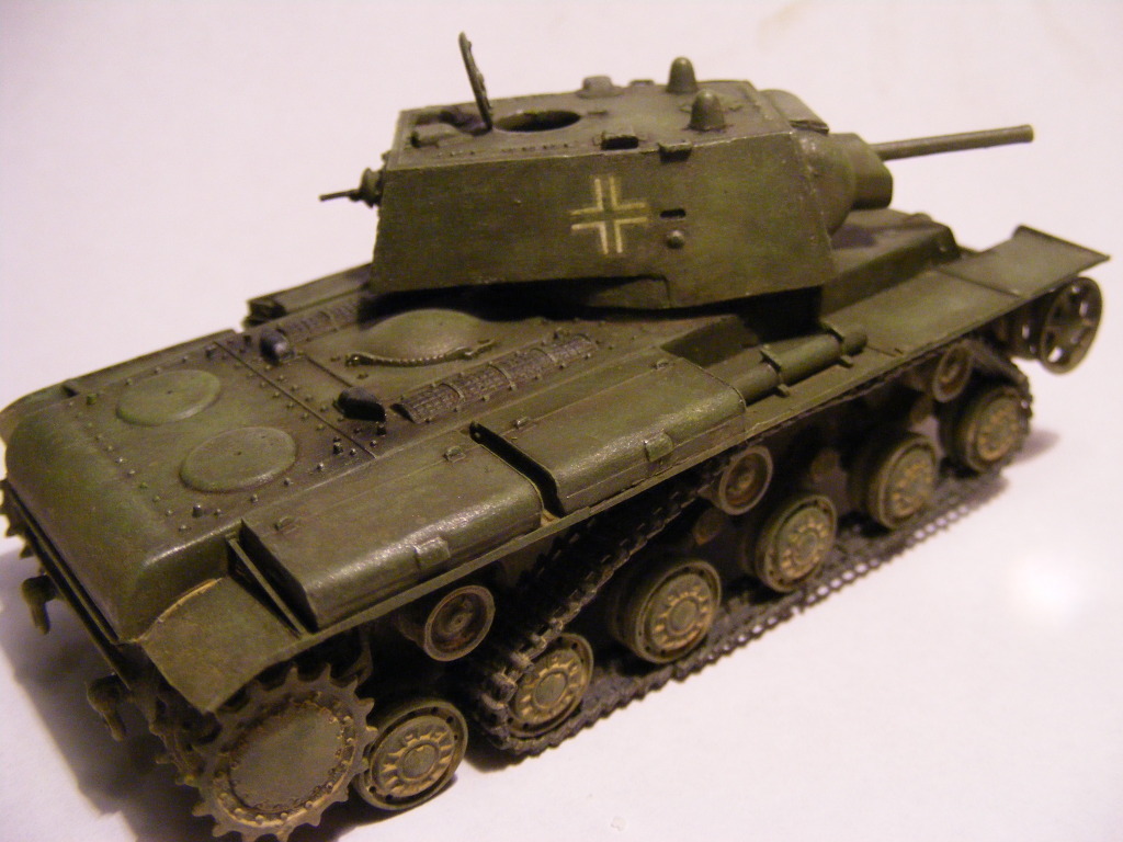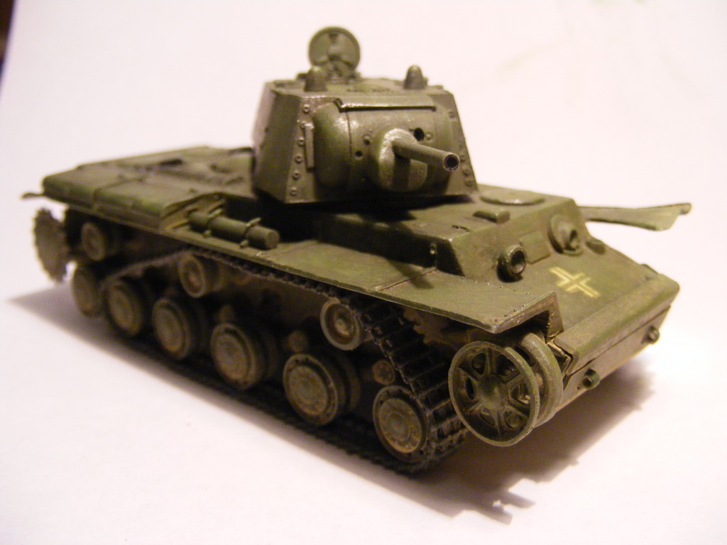 Ilian Filipov from Bulgaria sent me this picture of a damaged KV-1 in German markings, fitted with German panzer tracks.