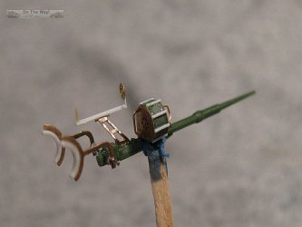 The mount and gun cradle were somewhat easier to build. A new cradle was built from styrene sheet using the kit's etched part as a template. This was done because the