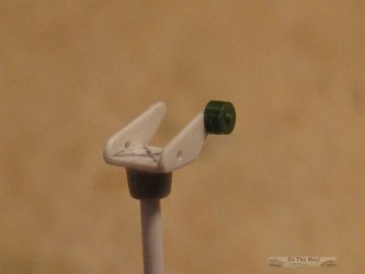 the rod and the etched rests meet is not a strong one. I decided to sandwich the etched rests between small disks of styrene slid onto the rod. This would provide