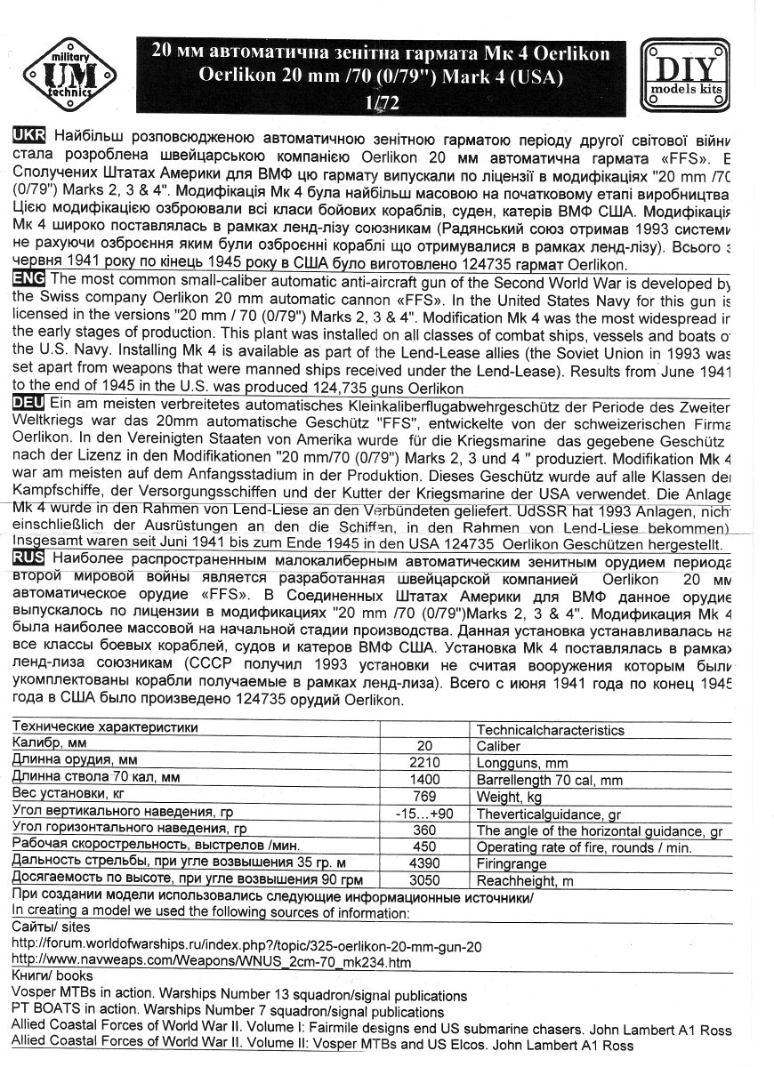 [1] Ordnance Pamphlet 911: 20mm A.A. Gun Oerlikon, U.S. Department of the Navy, Bureau of Ordnance, March 1943