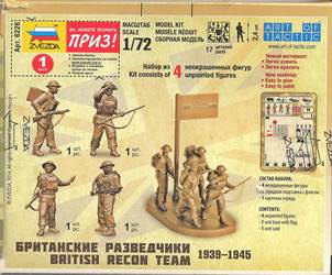 Three figures are equipped with rifles, one with a Bren Gun. One is