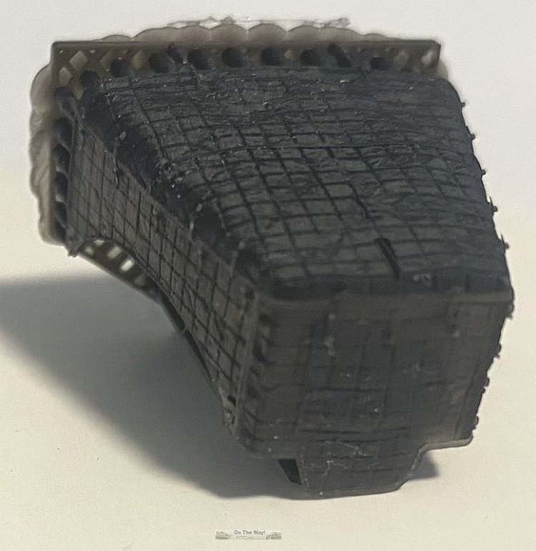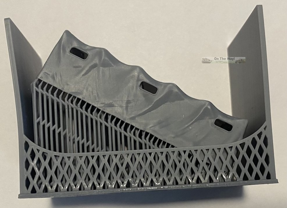 This simple set consists of one 3D printed part in black resin with quilted fabric detail. I presume this is intended to replace the plastic and PE hood and grille