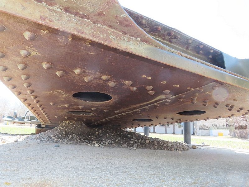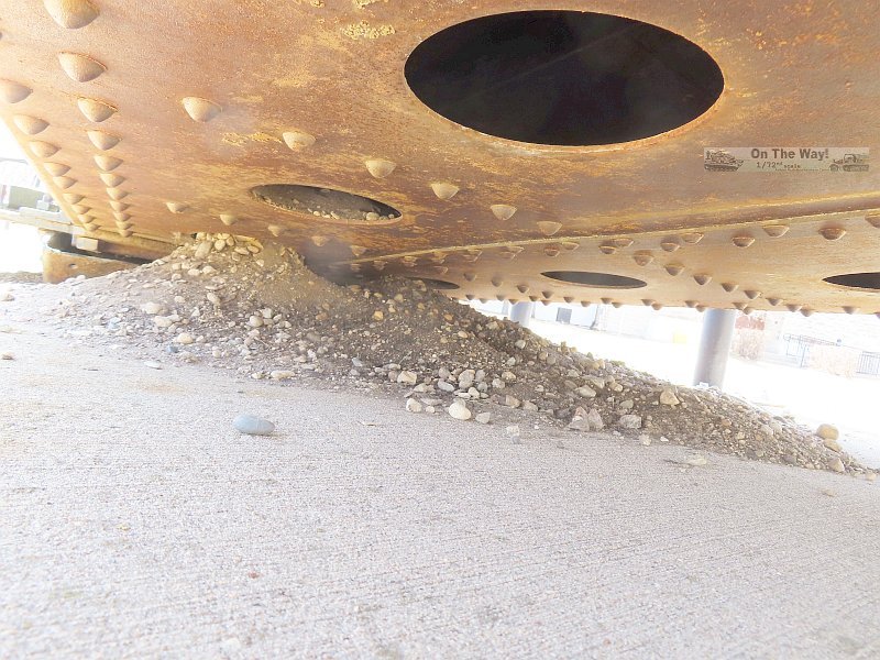 of the rear portion of this gun's trail underside. As I had surmised above, this area is covered. A surprising discovery though was the presence of six holes drilled