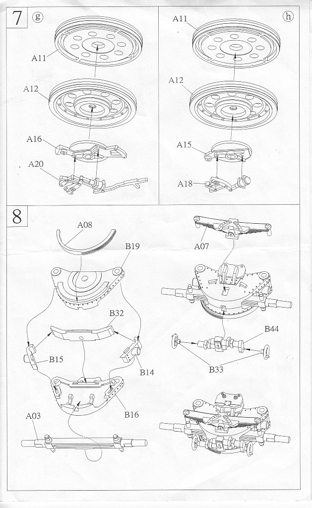 I glued together the two wheel backing plates (A16 & A20 and A15 & A18) but did not add them to the wheels. This was done later in step 12.