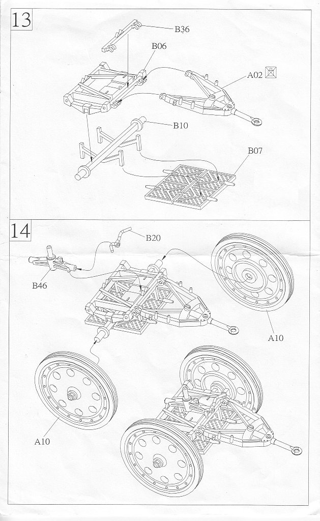 Steps 13 & 14: These two steps cover limber construction. I lost part B20 forcing me to fashion a replacement. Like in Step 7, the