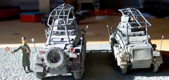 If you compare both vehicles, (SdKfz 232), standing next to each other, you notice that they differ a lot in shape and dimensions. I think creating a real accurate copy of the SdKfz 232 without a computer is almost impossible as it has so many angled suraces and weird measures, maybe the correct shape must be something in between the MarS and ALBY kit. ALBY's top hull is too wide, while MarS seems to be a bit too narrow; you notice this when you look on the engine coolant grid of the back of the vehicle on the MarS kits.