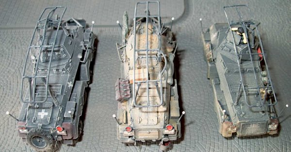Unfortunately the mounting for the sparewheel is already casted on the back of the vehicle so it is almost impossible to use the often applied Balkenkreuz here. DIMENSIONS AND SHAPE I'm not only into building 1:72, they are a major part of my work but for having good references I also follow events on the 1:35 market. Forgive me this Blasphemy but I think it is the kings-class of AFV modelling because it is not inconsistent like our small scale market. Basically I built my MarS SdKfz 263 with Tamiya's instruction sheet. I photographed both gears and as you notice it's sharing most details with its 1:35 big brother. Astounding!