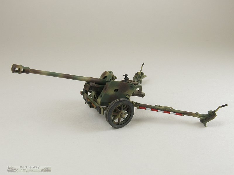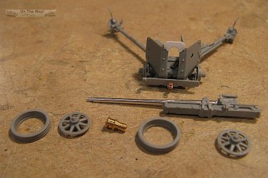 The majority of the work revolved around shield changes. The most noticeable being the fillet extensions above the barrel slot. After a few attempts I was able to cut some presentable fillets from some thin plastic sheet. These I sanded down to make them as thin as I possibly dared to go. The slot in the shield has to modified so that its sides are straight. This I did by cutting away all of the plastic save for the support brace that spans the gap at the top. I left this in place for a modicum of stability and strength for the shield while I worked on it. I attached the shield to its mount and let everything dry solid. Then I carefully snipped off the small brace that I left in place earlier, sanded everything smooth and added my new fillets. There are a pair of support braces welded to backside of the front fillet which I added with small strips of plastic. Other minor changes involved relocating the box on the backside of the rear shield from the centre, to the right side. A new gun sight was obtained from my spares box. As I had done for my previous Pak 40 build, I replaced the kit's barrel with an excellent metal item from RB Model, and as happened with the Pak 40, the metal barrel makes the model nose heavy, forcing me to display the gun with a small piece of blue tack under one of the spades to keep it sitting on its trails. That's about it as far as the conversion goes. Nothing really difficult, other than cutting out the slot in the shield, making the new fillet extensions and tow hitch, along with the usual test fitting along the way to ensure everything fits properly, are the only things to slow you down versus building the kit straight from the box. References