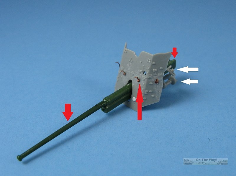 these is quite poor. The braces on the rear face of the shield were replaced with thin plastic strip that was given a slight twist to represent those found on the real gun. The UMmt kit's trails