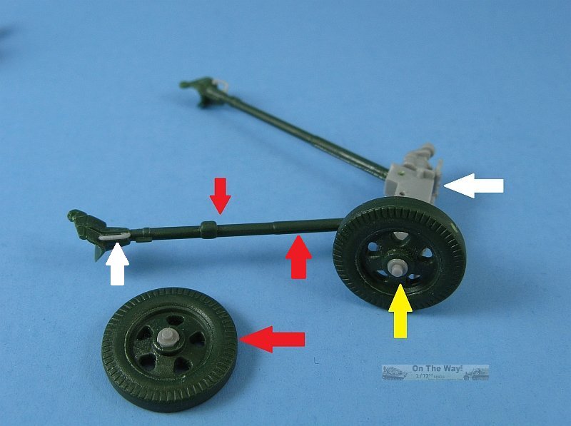| The yellow arrow points to the new wheel hubs that were obtained from the spares box. The UMmt kit's representation of