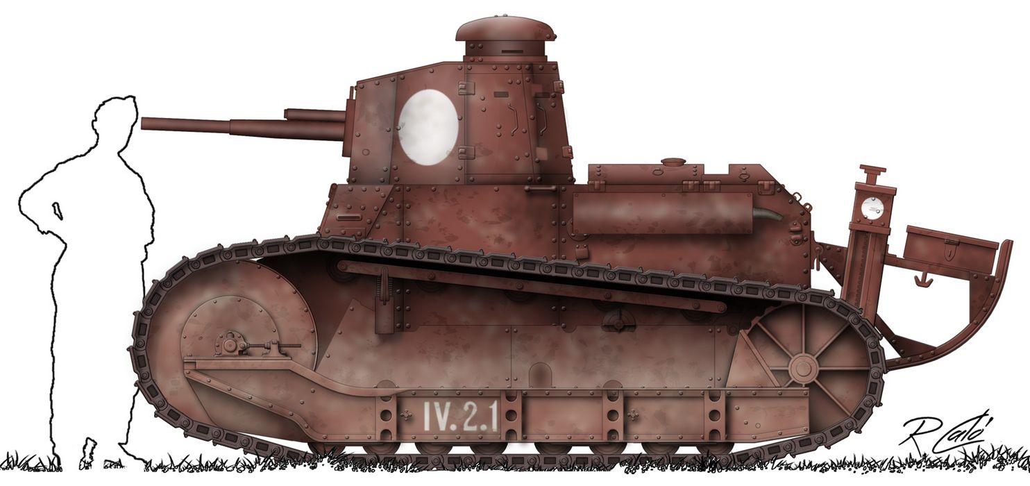 The Italian Army obtained very few FT tanks for carrying out tests; these were so encouraging that the Italian HQ decided to produce their own light tank, closely modelled on the French FT. Help was given to the Fiat company of Turin to start the design of the Fiat 3000 tank. Although the Fiat 3000 was developed from the FT, and retained the same basic shape and layout, it differed from the French tank and contained a number of original features. Much development work was carried out, and it was not until June 1919 that a prototype was ready. After some tests, marked by breakdowns, production started and the very first tank was completed in the summer of 1920, called Carro Armato modello 1921 (Tank, model 1921), 100 of which were produced until the end of 1928.