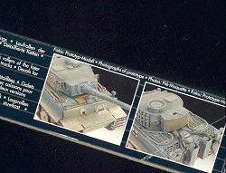 ![]() As one can see in the scan above, this kit comes boxed in Revell's now-standard, two-part, black cardboard box, with horizontal gray lines. The size of the box is perfect for storage in copy-paper boxes, where a row of Revell kits will fit perfectly standing on end, unlike the old ESCI boxes, which were too tall to fit neatly within this common type of storage box. The majority of the box top is filled with the awesome artwork from Enzo Maio. (A little side-bar here: several years ago, Jim Matthiessen and I co-authored a comparison article of the Hasegawa Tiger I and Revell Tiger I Ausf. H kits. One of the points that Jim made was that the boxart on the Hasegawa kit [done by Enzo] was much nicer than the Revell boxart [not done by Enzo]. Since that time, Revell now has Enzo do their boxart. Coincidence? I think not.) The box title is clearly printed in a large, white font, which makes it very easy to read from a distance. This same feature is thankfully repeated on the ends of the box as well, so that when viewing this kit in a stack of similar kits on a hobby shop shelf, the kit is easily identifiable. The sub-text is presented in a similar, but sans-serif font style, in a smaller size. This serves well to divide the text into sensible sub-sections for easy reading.