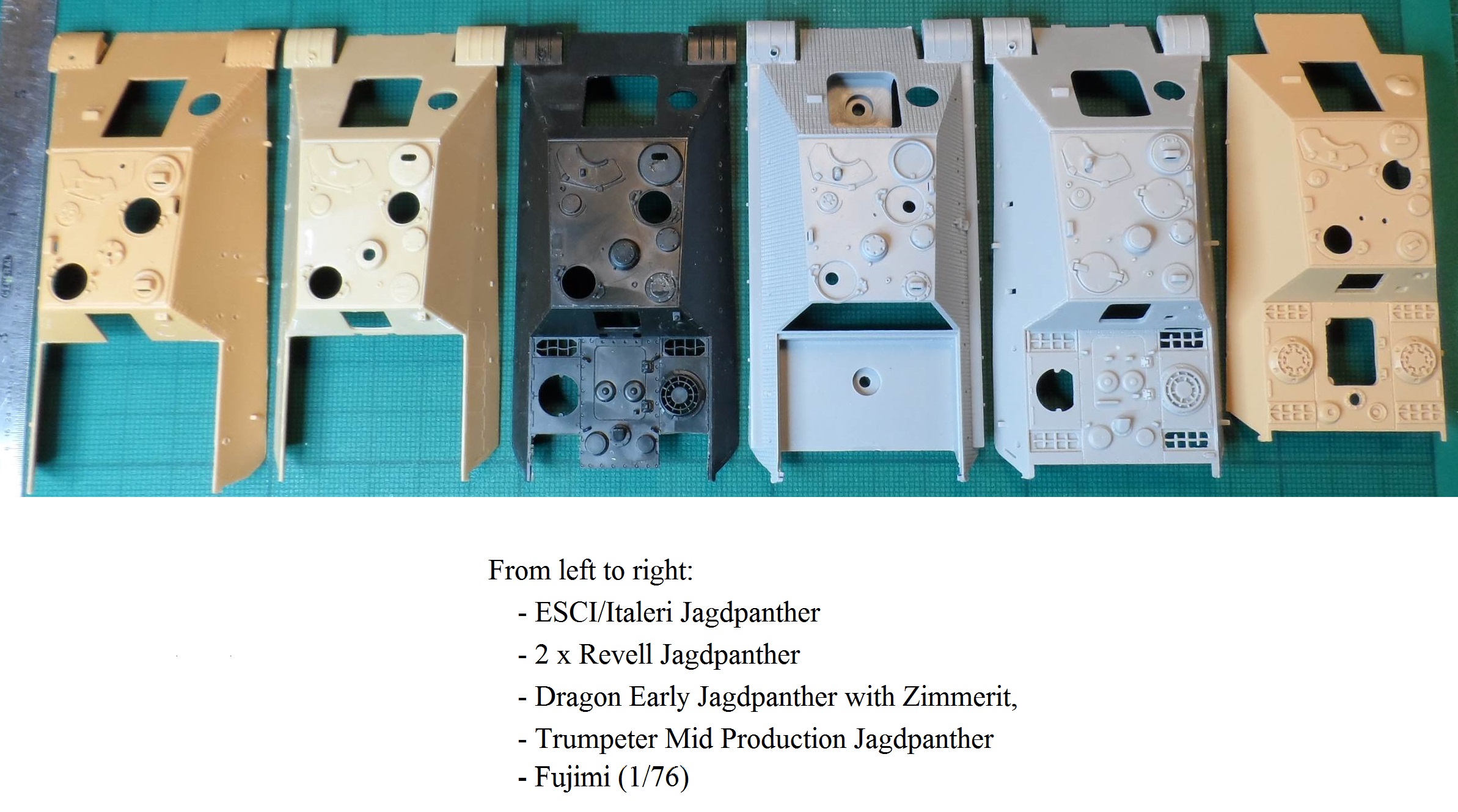 References: [1] Panzer Tracts No9-3 "Jagdpanther". T.L. Jentz & H.L. Doyle, 2005 Preview samples purchased by the authors, except for Zvezda kit which was obtained as a review sample from Zvezda through IPMS/Belgium |