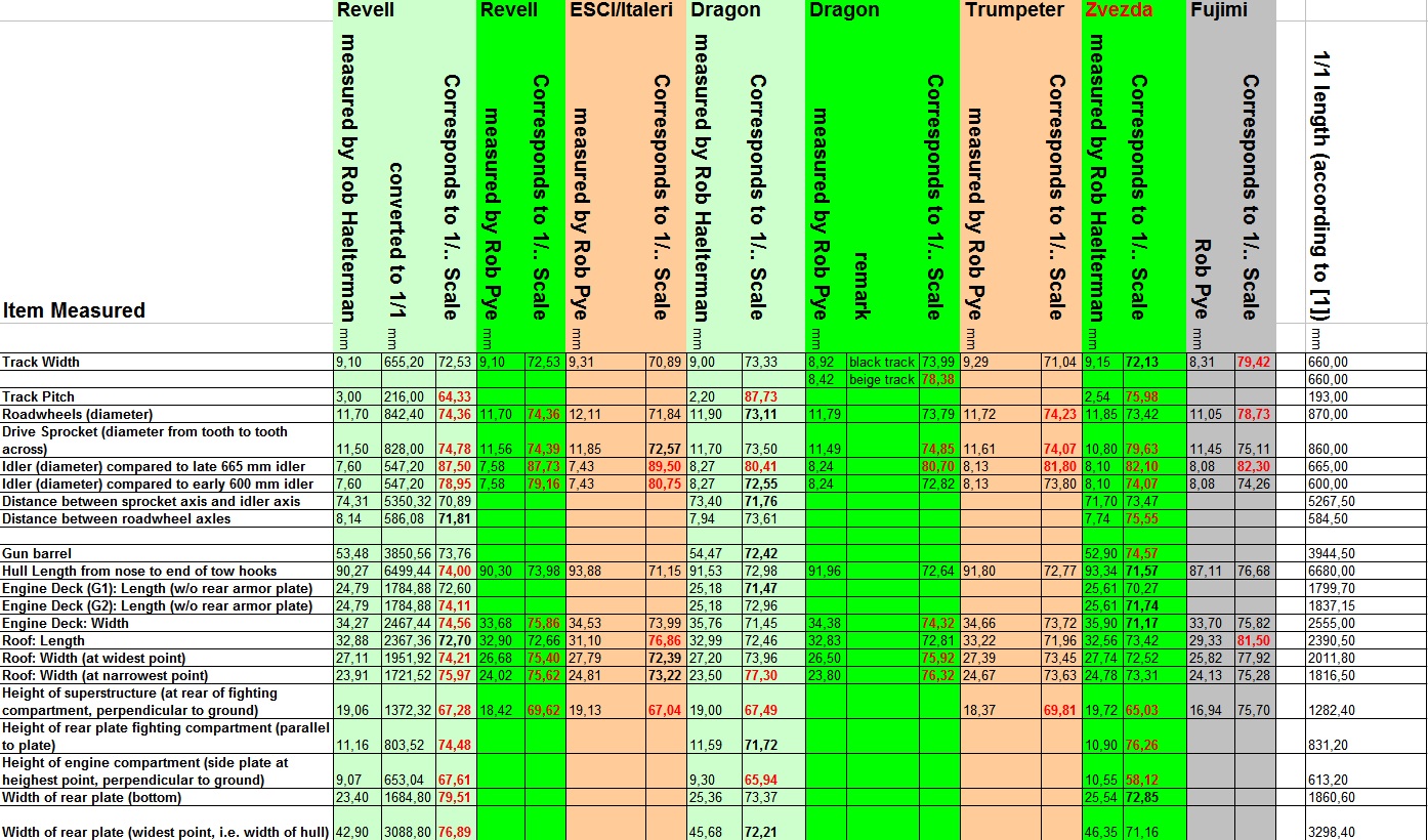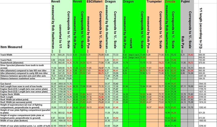 | Rob Pye and Rob Haelterman measured a number of kits against scale plans found in [1]. The results can be found in the table below.