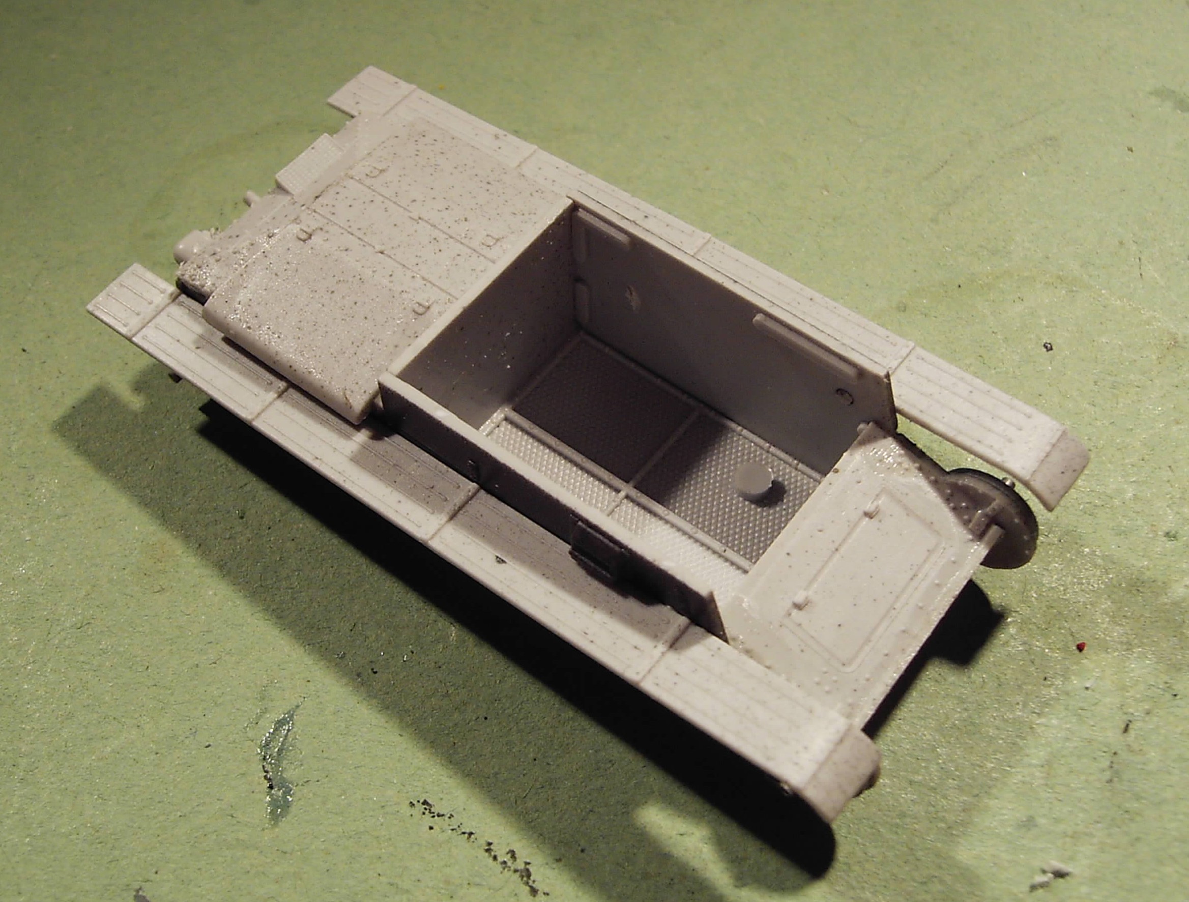 - An annoying aspect of UM's desire to use as many common parts as possible is the way they modeled the discontinuous front plate of the early variants. You just have to glue a protruding part to the driver's side. Fine, but the hatch is molded on the top plate (which is not altered). As such the driver's hatch is too much to the rear for the early variants. Scratch-building required.