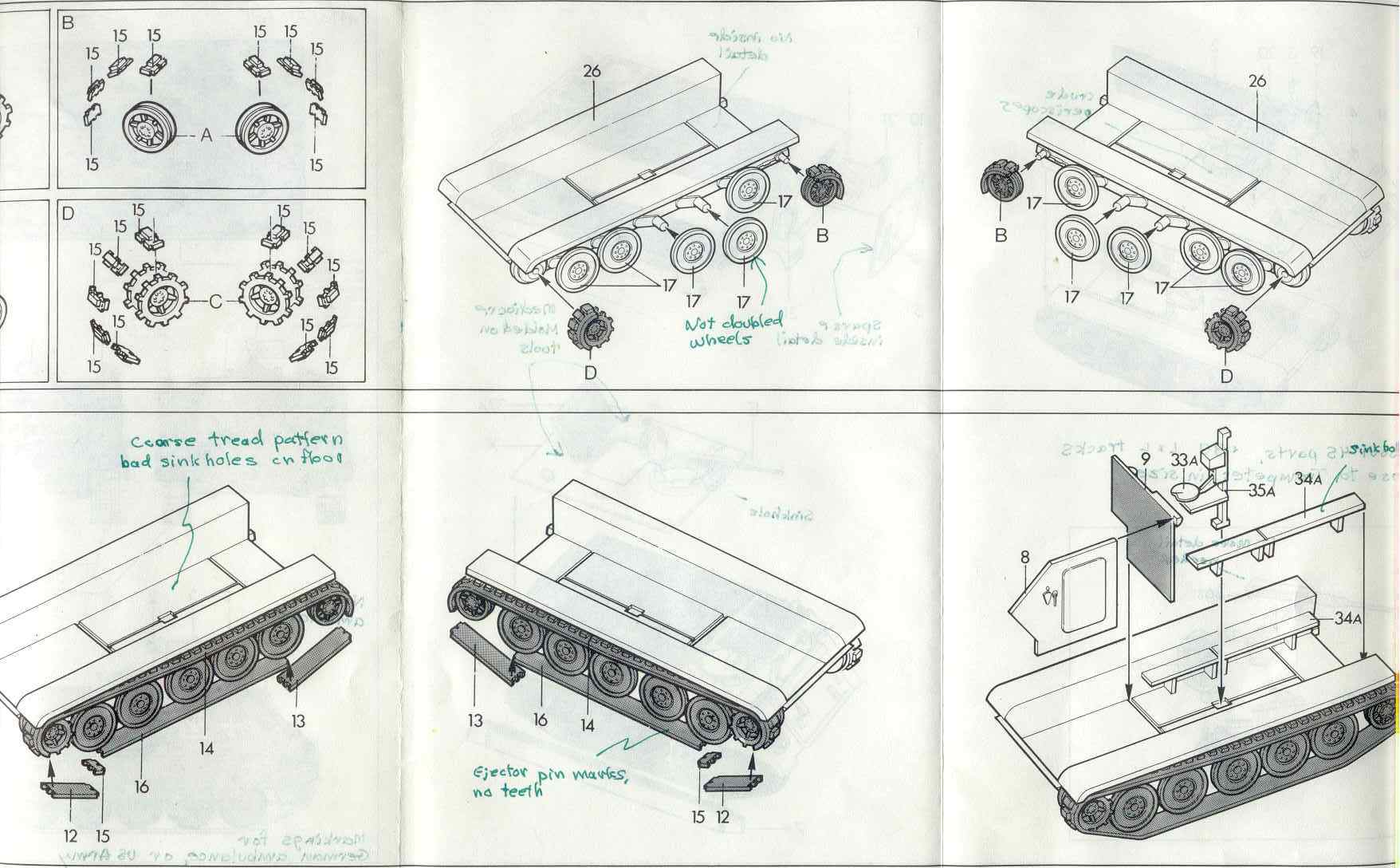 right and the greatly simplified turret and gun at center left. The