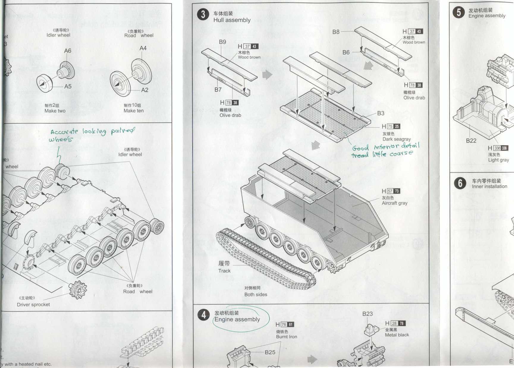 turret parts and a 4-view painting guide. The turret is open top and