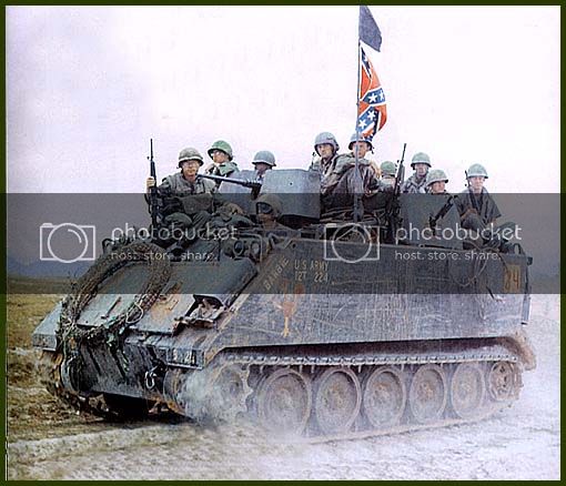 the APC, or the three machine guns and shields of the ACAV vehicle;