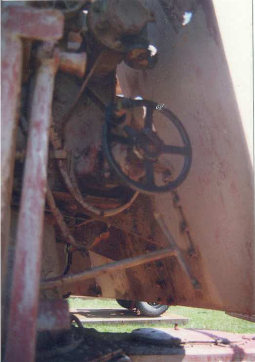 handwheels. The T-shaped rod below the right handwheel is the gunner’s