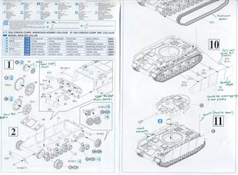 The above scan shows the final assembly stages of Revell's Pz IV Ausf. J kit 3122 with the attachment of all the hard plastic track links.