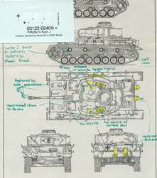 Above is Revell's Pz IV J kit marking guide with notes on what I understand to be a representative Pz IV Ausf. J. To build a late Ausf. J, pay attention to the drawing of the new tow eyes on the bow which are extensions of the side plates.