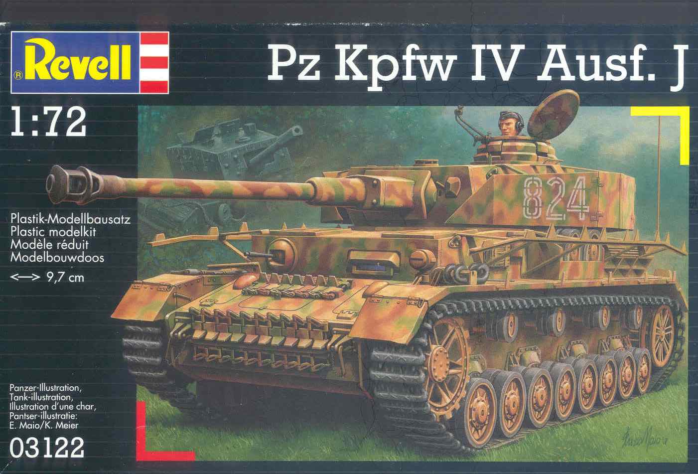 Revell's Panzer IV Ausf. J kit #3122; As Revell's Ausf. J shares most of its parts with Revell's Ausf. H, most of the comments for kit 3119 will count for kit 3122 as well. Certain features like the exhaust pipes and gun muzzle will need to be drilled out, where DML's slide molding makes this drilling work unnecessary. With some new scratchbuilt side rails and fine wire mesh from model railroad supplies, Thoma skirts will make a nice variation.