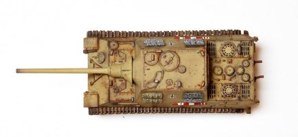 This is a simple, fun kit to build until it comes to fitting the tracks. They are waaaay too short! The first fitting caused the axle on one of the idler wheels to snap so these and the drive wheel axles were replaced with brass rod. After getting them to stay together by melting the ends together, the tracks are putting too much stress on the wheels causing a couple to twist. Thoughts of inducing some sag had long gone by this time. Normally I wouldn't send something like this as I don't think it's turned out well enough but there's no pictures of this Trumpeter model currently in the gallery and none that I could find on the web. It may serve as guidance/deterrent for anyone contemplating this model? Painting was:
