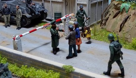 I used the Solfig checkpoint set which has two German MP's, a dog, three French civilians and a barrier arm with support posts.