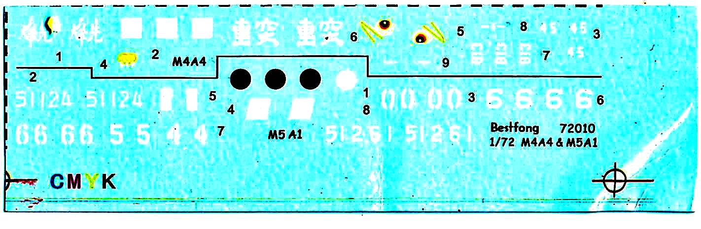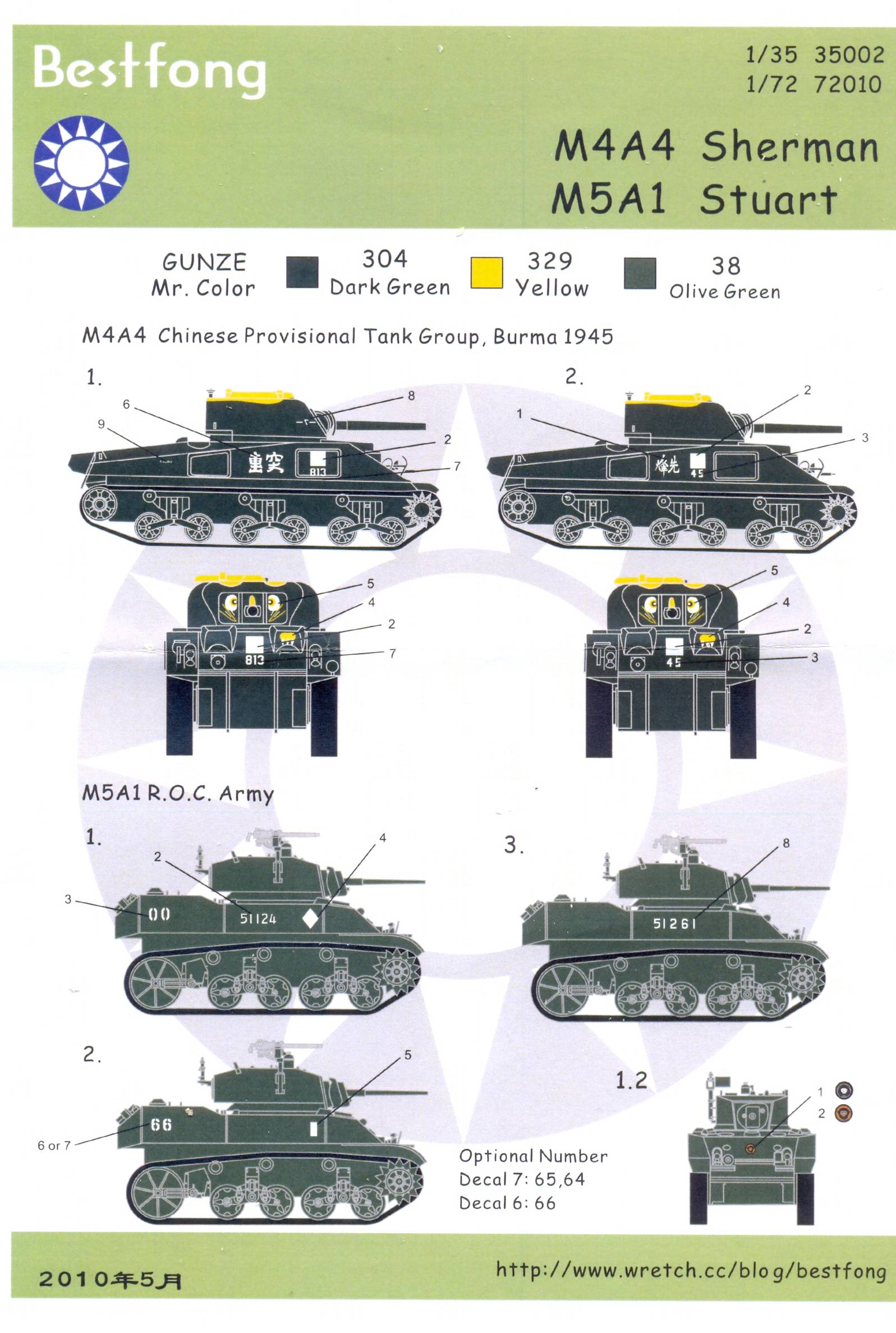 with decals for two Shermans and five Stuarts of the Taiwanese Army.