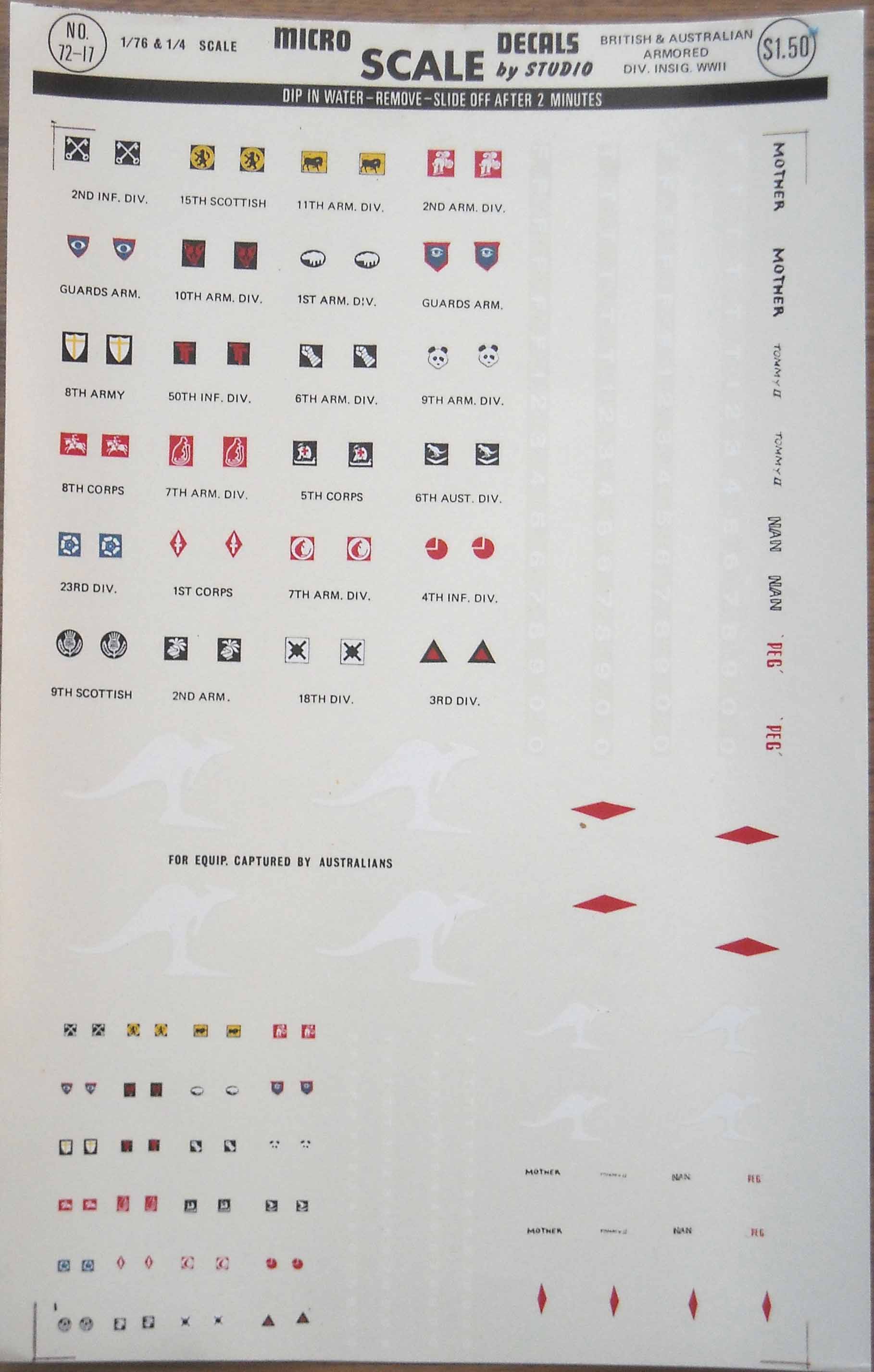 British and Australian Armor Division Insignia 1/48th & 1/76th Scales. | Ex 72-17 "British