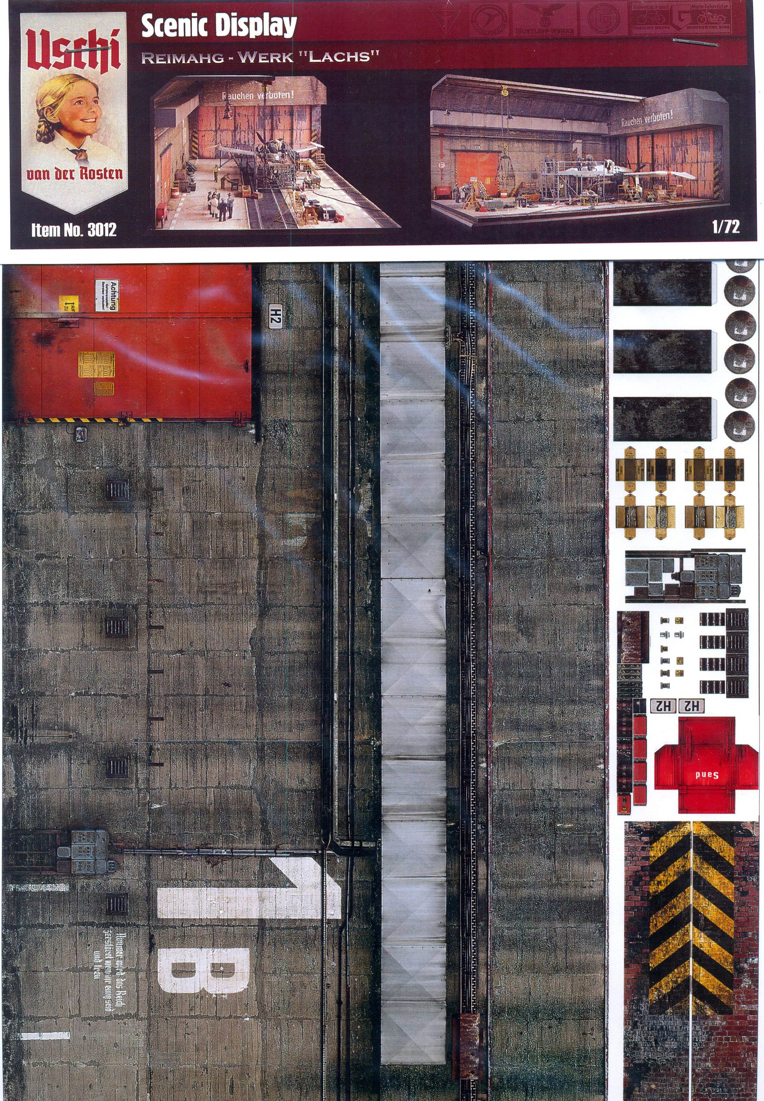| 3012 | REIMAHG-Werk "Lachs" | Cardboard aircraft workshop. Can be used for AFV. 28.5 by 20cm. Assembly required. | Picture