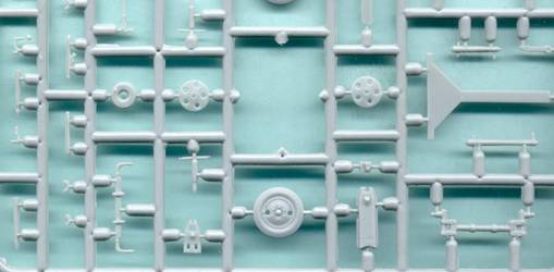 This sprue carries the 85-mm gun barrel with the recoil parts, part