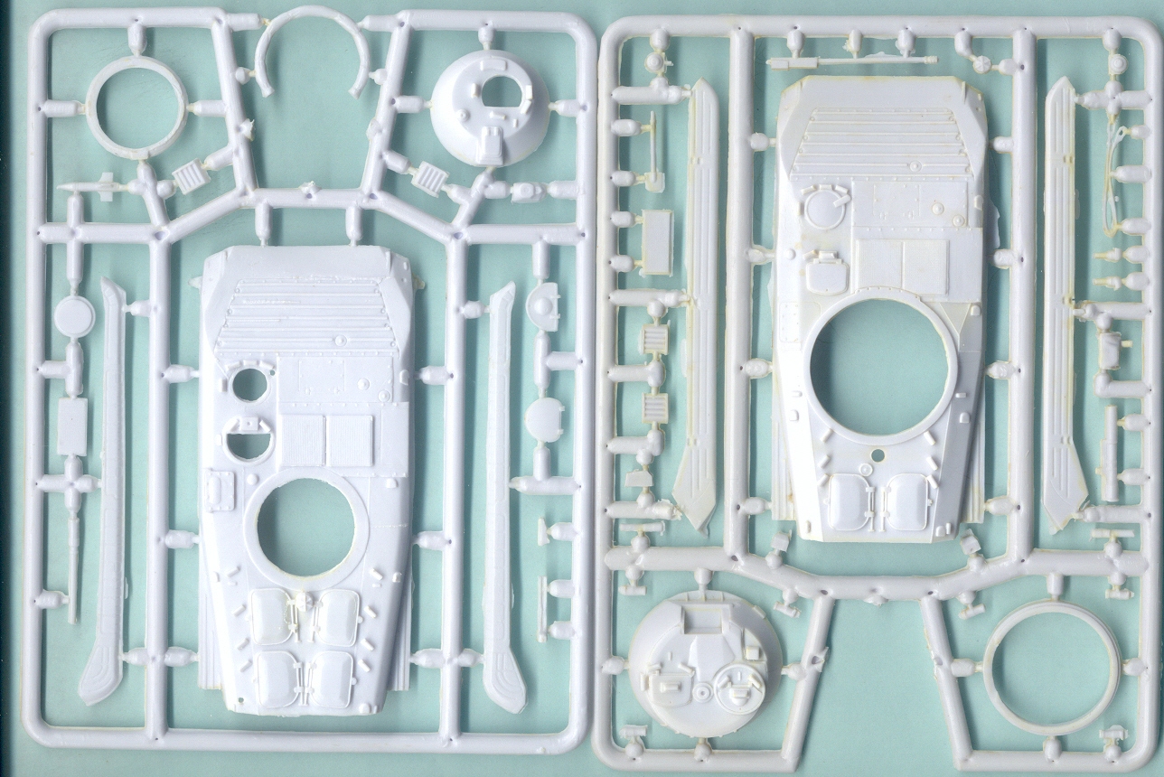 BMP-2 hull on the right sprue displays the larger turret ring and