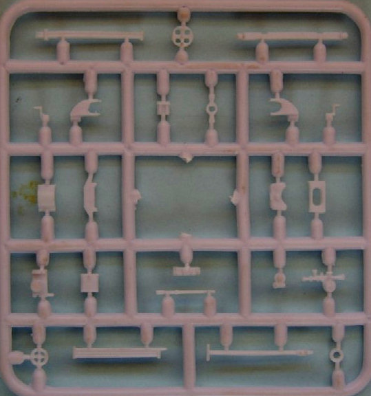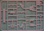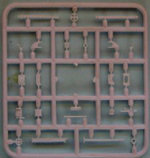 The three main sprues are exactly the same as the A-19 kit. Unlike the A-19 though, wartime pictures are easier to find of the ML-20, and although museum pieces show that the pistons are covered by thin sheet, wartime pictures show the sheet not to be present. The new sprue is the barrel complete with shells and cases. Although the barrel is moulded solid, it has good detail on the outside and with some careful drilling around the muzzel will improve. Another welcome artillery piece from ACE and something for the tractors to tow at last. |