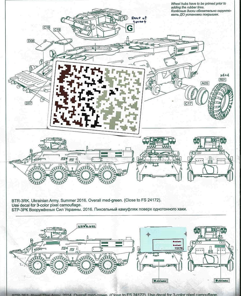 contrary to the rear entry of common NATO 8x8 vehicles and the Ukrainian BTR-4. The BTR-3RK kit is a tank destroyer variant with basically a new turret atop the same hull as the BTR-3E1 model kit box art above.