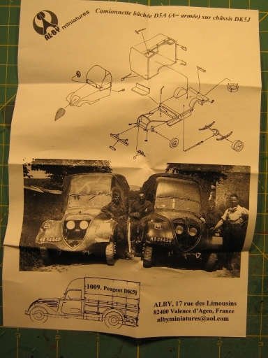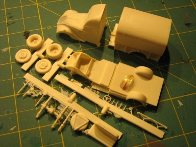 Material: Resin Quality: very good casting quality and fine detail on kit Parts: 30 (1 P/E) (cab, chassis, cargo body, x2 front wheels, x2 rear wheels, rear suspension, front axle, bumper, mirror, steering wheel, seats, grill, spare tire, headlight assembly, misc. parts) Instructions: exploded diagram, line drawing & 2 period photos of vehicle Packaging: plastic blister pack Additional: