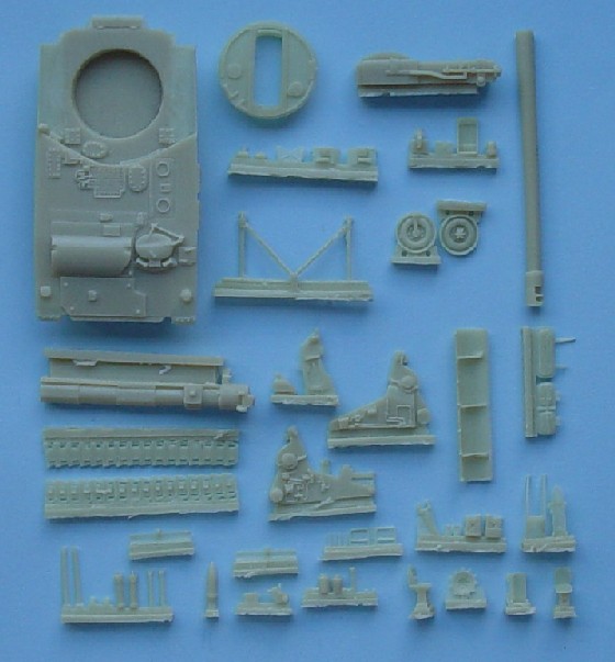 Cast in the usual buff coloured Resin of Armo, I find this to be a mixed bag of some good and some bad parts, some are nicely done and other a bit crude. It is extremely well cast to the usual Armo standard with no flaws or air bubbles, the hull is cast as one piece with the wheels and suspension arms being seperate, which means that the vehicle can be stood on uneven ground realistically. The shape of the hull is a bit odd, in that it is not square down the sidea and bows out in the middle, having no plans to check it seem very odd and although it is difficult to see in photos of the real vehicle, but they look to be square on all the pictures I have seen. The lower hull is square for the placement of the wheels, so there are no major problems there. The gun is a multi part affair of 3 pieces, the lower part with the raising gear is very nicely done and well detailed, the other two parts which make up the barrel and breech are let down by poor mis-alignment of parts, I suppose that the barrel could be made straight, but the muzzle brake is mounted off centre, which can be fixed but not easily, the muzzle brake is also very crude. The rest of the parts are also a mixed bag but no major problems, the tracks are nicely detailed and come in short lengths to be bent around the idler and sprocket using which ever method you prefer, the hot water or hot air. The kit measures out well to 1/72nd scale although the bulge in the middle does make it slightly wide. This is not a kit for the faint of heart. References: Janes Armour and Artillery 1990-1991 11th edition by Christopher Foss.