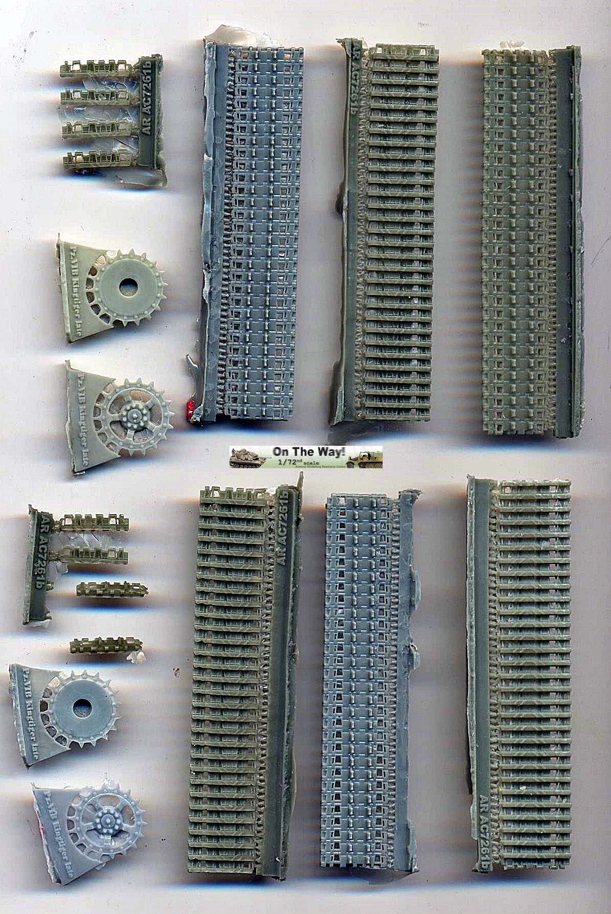 Illustrations of these can be found here. Note that conventional wisdom has it that the Kgs 73/800/152 tracks were handed, which Armory has duly noticed and implemented in this set. (Take care, as the difference is very subtle !) The parts are very well cast, with discrete sprue gates and minor amounts of flash. Even then, due to the finesse of the parts, removing even this little amount will be no sinecure, especially in the open guide teeth. Pitch is spot on for 1/72, but width is closer to 815mm, instead of 800mm, which, admittedly, is close enough in my opinion as it only represents a difference of about 2%. While the instruction leaflet shows the parts that you should get, and where they should go, there is no indication how to get them to take the shape that they are supposed to take. I have heard this is best tackled using a hair dryer but I will need to see how this works out. Conclusion: