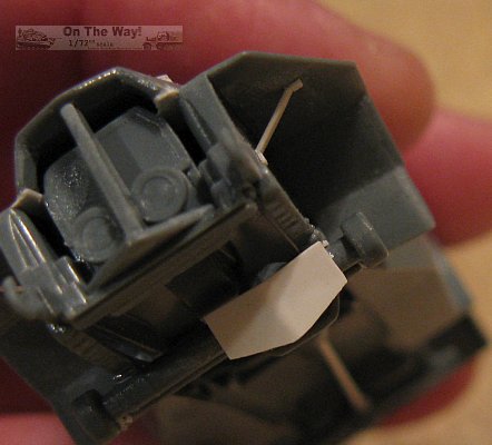 - If one has the armoured windscreen cover in the open position the modeller should add the curved rod used for opening the cover.