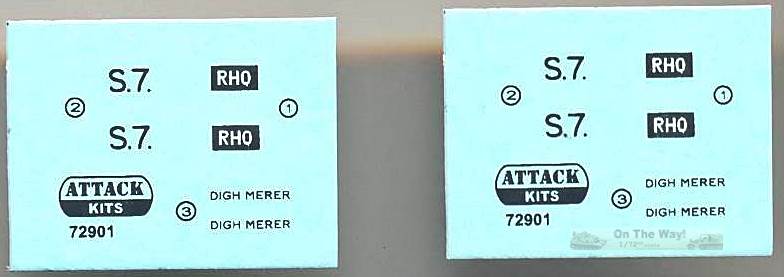 chose, the decals with the white RHQ enclosed in a black rectangle, was a disaster. After dipping in some warm water the decals literally disintegrated when touched