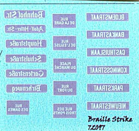 Conclusion Braille Scale continues to expand its series of well-printed decals. This set will enhance a diorama in the ETO, but after having expected the Normandy Road Sign set, I had hoped to find some photographic references for this set as well.