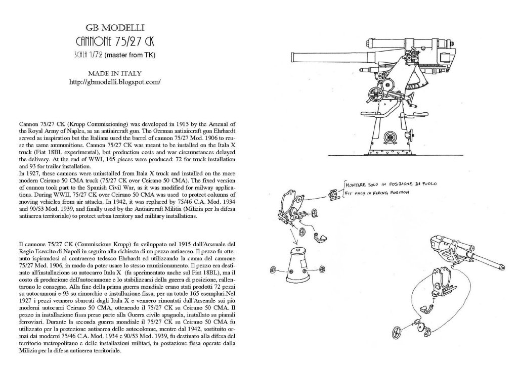 This is the stand-alone version of the gun which is also sold separately as mounted on the ItalaX truck (kit.# 72015). Pieces are the same, but arranged on the sprues in a slightly different way. The assembling instructions are also the same.