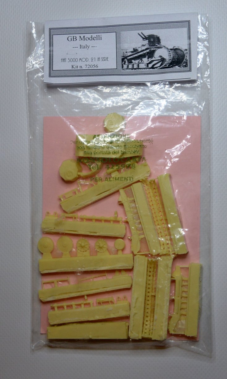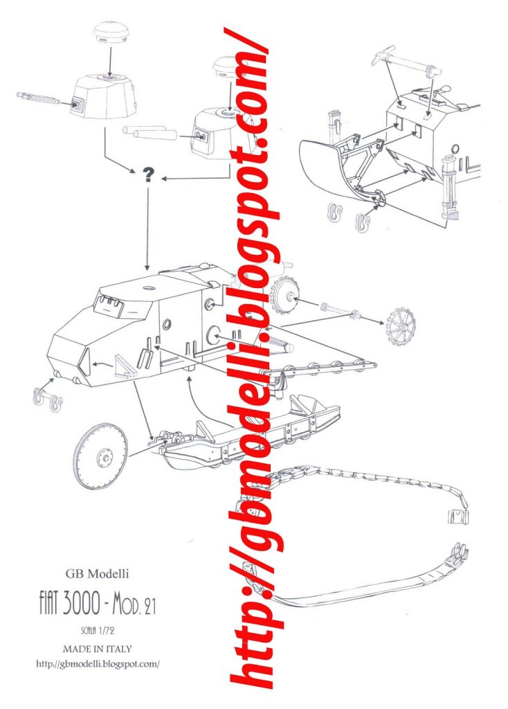 Parts are finely cast in the typical cream-colored resin, with no short shots, pin holes or warps, but with some thin flash that will be easy to clean up, a bit excessive in some areas. Unfortunately, there is a good amount of very tiny microbubbles, which is something you expect when working with resin: some of them are visible and will need intervention. There is a limited number of pieces inside the bag: the hull built in a single piece, 2 turrets (early version with SIA MGs and late version with FIAT mod. 14/35 MGs), the rear tail for large trench crossings (something which shows how much this tank derived from the FT-17), the tracks in 4 pieces, the entire left and right wheels and suspension meachanism in a single piece, a block containing both the idler and main wheels along with the typical "cap-like" commander's hatch, another 4 blocks with the smallest pieces (mufflers, tools, the two sets of rollers, towing hooks). Some initial considerations: the accuracy is very high, with particular mention to the very accurate reproduction of the many bolts visible on the hull and turret. Speaking of accuracy, the 4 typical reinforcements on the bottom frames of the suspensions are present, which means that the kit reproduces a post-1935 tank, hence the 1a serie (1st serie) on the kit name is wrong (UPDATE: the 1a serie (1st serie) has been removed from the kit name by the producer). By 1935 all the turrets with the SIA MGs were meant to be replaced, however this never happened, so it is possible to build this kit with the earlier turret: in this case, the SIA MGs supplied with the kit are very finely reproduced, although they look slightly warped and must be cured in hot water (again, something you would expect when working with resin); moreover, the early turret lacks the oval plate with the FIAT logo, which must be scratched looking at photos of the real vehicle. The instruction sheet is very simple, but, as you can see, assembling is rather easy and there will be no doubts about where to glue a specific piece. As usual in GBModelli kits, there is no decal sheet, and this is a real pity as every tank had its markings, which changed completely during the very long career of the FIAT 3000, as well as license plates: this will force the modeller to look in the spare decals box (for example, the decal sheet of the Italeri fast-build Italian tanks can help). Black Lion Decals produces a set dedicated to World War I Italian Armor & Trucks (72006) which has some decals for the FIAT 3000, but unfortunately most of them are more suitable for pre-1930 tanks, so that they can not be used with this kit.