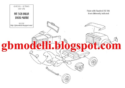 I am happy to see that GB Modelli has started protecting their kits with a sturdy cardboard box, while previously they were sold in simple, unprotected plastic bags. The parts are very crisply molded, with quite a bit of flash, which is something you must expect from limited-production resin kits; being very thin, it can be easily separated form the pieces. No warping, no pin-holes and minimal attachment blocks. The resin is soft enough to be easily cut with a sharp hobby knife without splintering or excessive effort. All the most important elements are present and recognizable, althought the final model is very small: some scratchbuilding abilities are requested, since some parts must be provided by the modeller, such as the trasparent part for the windshield. The assembling instructions are the typical GBModelli style drawing on paper.