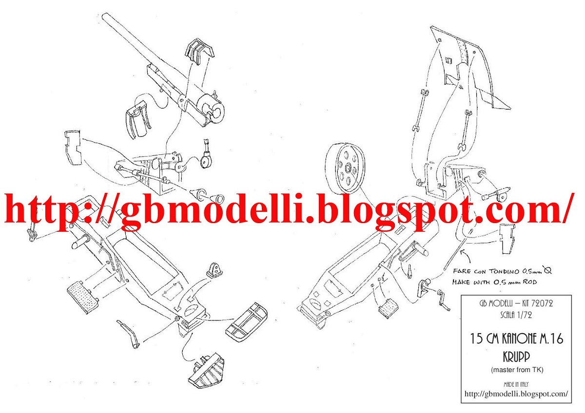 | The 15 cm Kanone 16 (15 cm K 16) was a heavy field gun used by Germany in World War I and World War II. Guns turned over to Belgium as reparations after World War I were taken into Wehrmacht service after the conquest of Belgium as the 15 cm K 429(b). It generally served on coast-defense duties during World War II. I am happy to see that GB Modelli has started protecting their kits with a sturdy cardboard box, while previously they were sold in simple, unprotected plastic bags. The parts are very crisply molded, with quite a bit of flash, which is something you must expect from limited-production resin kits; being very thin, it can be easily separated form the pieces. No warping, no pin-holes and minimal attachment blocks. The resin is soft enough to be easily cut with a sharp hobby knife without splintering or excessive effort. The model is well-engineered, so that only a limited amount of scratchbuilding and adding details is needed. The website of GBModelli has a page where pictures of the real gun are shown, which will further ease construction.