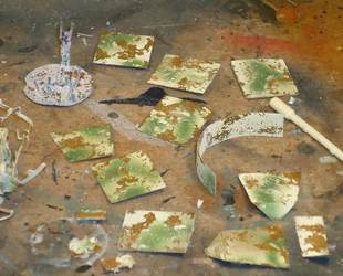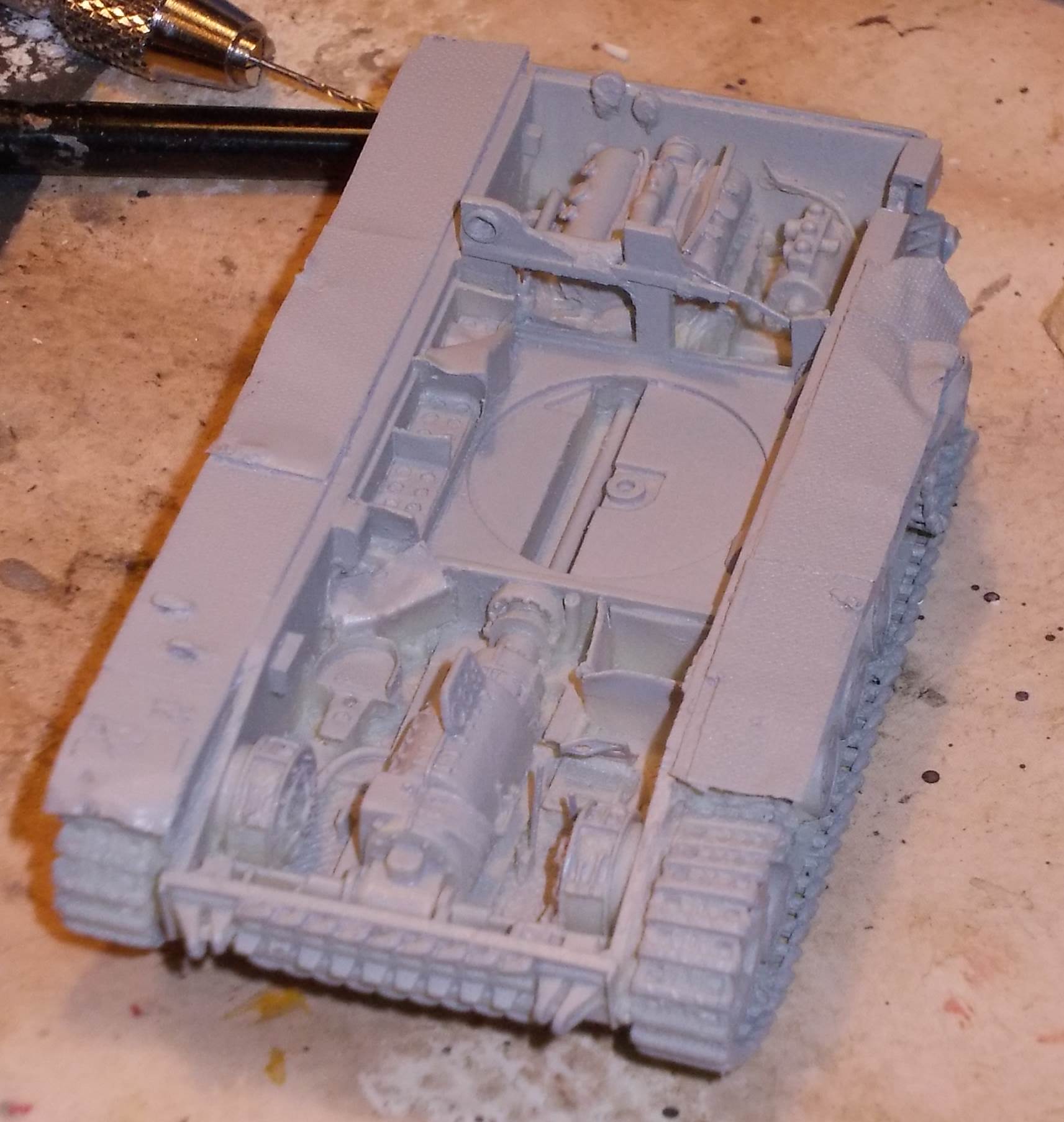 Vestiges of Zimmerit can be found. I assume the rest has burnt