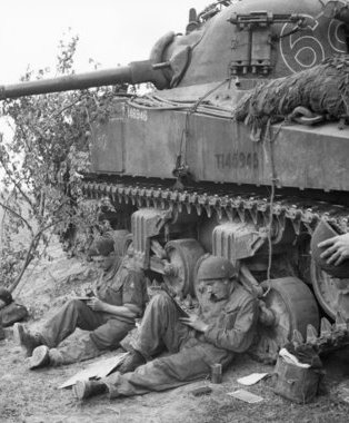 Mk III “11” Having the squared welded hoods, the cast rounded transmission cover, the “D” type antenna bracket and the M34 gun mount type, it was a Fisher tank. The forward right appliqué armour wasn’t clipped. The tracks were the metallic T49 type. The LCT number 1126/212/LCT IV was visible just under the right brush guard and 1126/LCT IV/212 on the right hood. The WD number is not known and the name has been subject of various interpretations, the same forum page above, reports as possible names AISNE, DESTRIER, DESERT, DESTINY, DESPOT and MESSINES. It had the number “24” chalked just backward the right appliqué armour. |