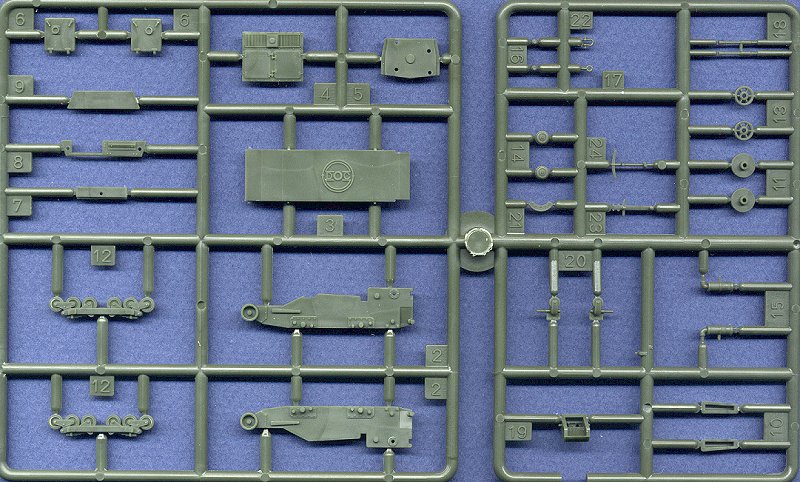 ![]() Finally, an Axis tank model in plastic, and it isn't German! I was aware of DOC Models' resin kits for a while now, but it came as a huge surprise when I heard they were going to make this light tank in plastic. When I saw the photos of the test shots from Milan Vins' trip to Nurnberg, I was amazed and excited. Now with one of the kits in hand, I can say that I anxiously await all of DOC Models' future releases. This is an outstanding model, with only one minor error. First, take a look at what you get in the box. It is actually quite a complex kit for something so small, but that's a good thing, because it allows for a lot of detail to be packed into this little model. This is the first plastic kit this company has made, and it is apparent that their goal is to give modelers what they want in a kit. The hatches are open; all of them. The pioneer tools are molded as separate parts (although some of them could be better formed, the jack for example). And although the tracks are single-piece rubber bands, they are amzingly well detailed, with incredibly fine guide teeth on the links. I hope it will be easy to replicate track sag without having to resort to any magic tricks. But here we have the only problem I have with this kit, the drive sprockets: