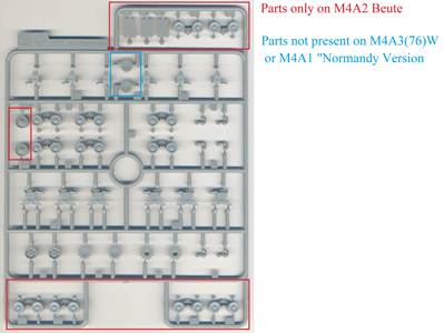 Sherman MkIII: Most of the parts of sprue B are blued-out,